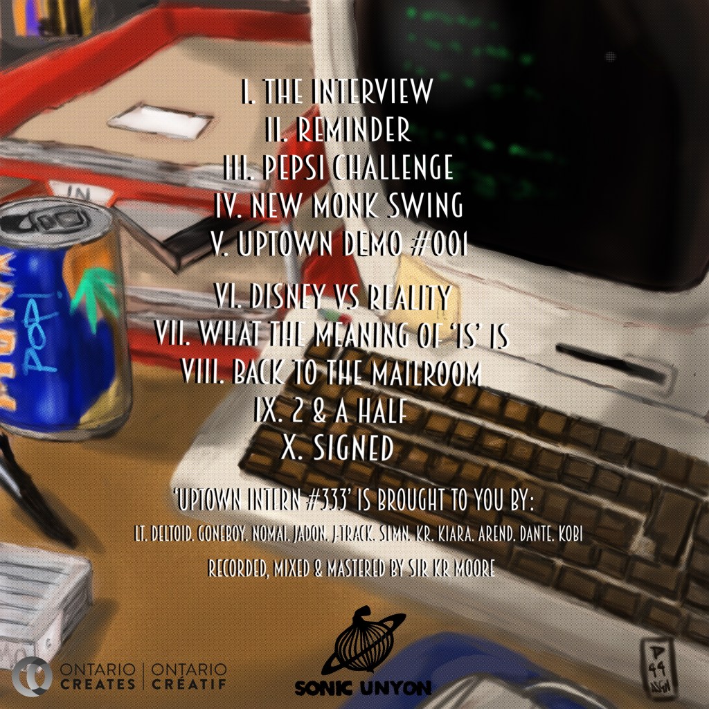 Uptown. The sound defined as New Jack Swing, made famous by Teddy Riley, Jodeci & Andre Harrell. The Intern. The child with a love of music so pure, he will do anything to see that love realized. Uptown Intern #333. Travelling through the Uptown halls, the eras, the sounds, to find the New Monk Swing. Enjoy the album now, available on all streaming platforms, Bandcamp, CD + vinyl.
